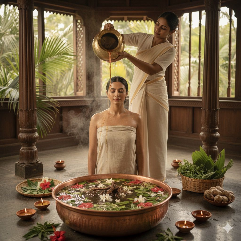 Step into a world of ancient luxury with Oushada Snaanam, a regal Ayurvedic healing ritual practiced by kings and queens in traditional Kerala.